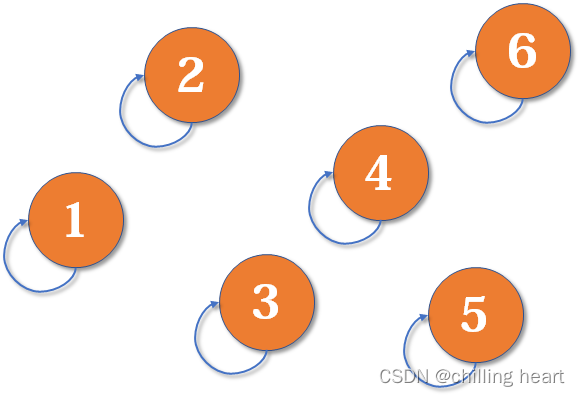 假如有编号为1, 2, 3, ..., n的n个元素,我们用一个数组fa[]来存储每个元素的父节点(因为每个元素有且只有一个父节点,所以这是可行的)。一开始,我们先将它们的父节点设为自己。
