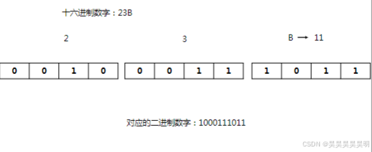 (1)规则:将十六进制数每 1 位,转成对应的 4 位的一个二进制数即可。