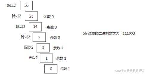 (3)重复此过程,直到商为 0。最终得到的余数反向排列就是二进制表示。