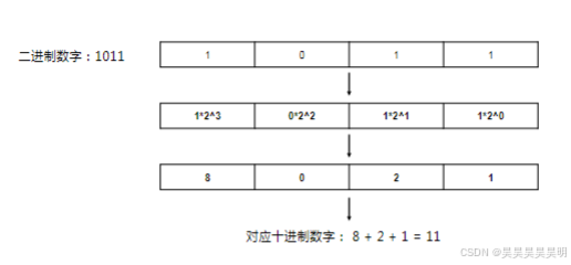 (1)从右往左,分别为每位赋予 2 的幂次,从 0 开始。