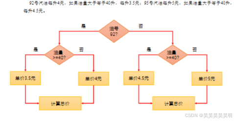于等于 40 升,每升 3.5 元;95 号汽油每升 5 元,如果油量大于等于 40 升,每升 4.5 元。