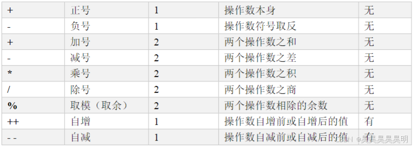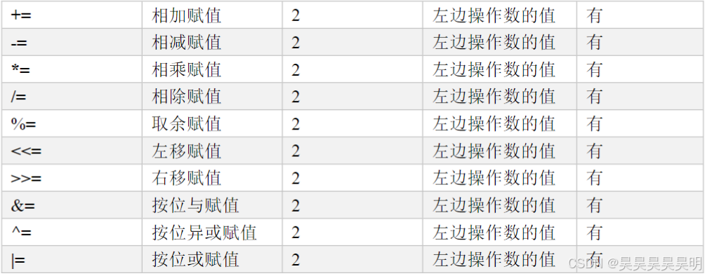 (4)运算符有无副作用,副作用指运算后是否会修改操作数的值。