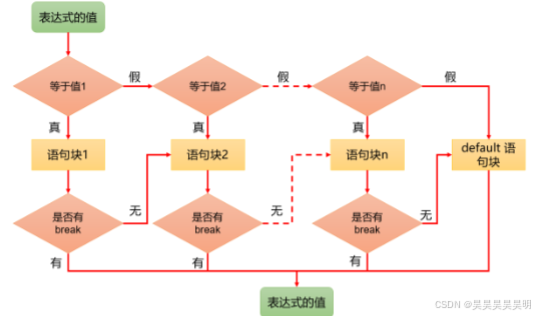 (3)default 是可选的,当没有匹配的 case 时,执行 default。