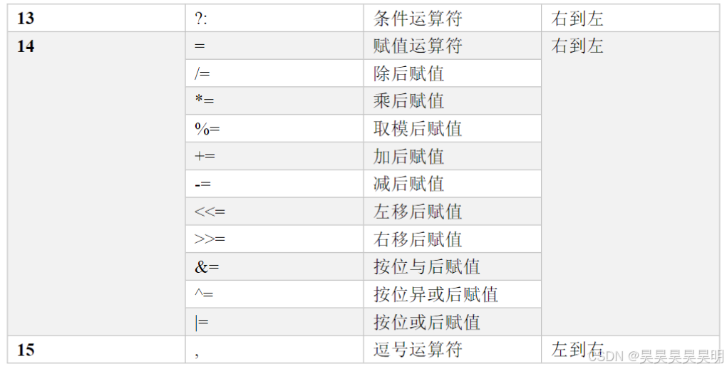 赋值运算符 关系运算符 逻辑运算符