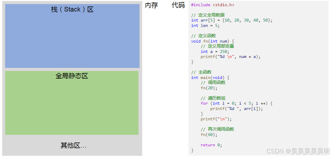 在函数和代码块(分支语句、循环语句等)以外定义的变量、标识符常量、数组等具有