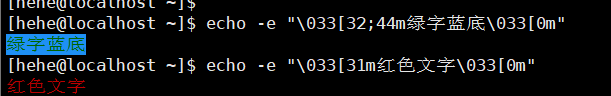 echo -e "\033[32;44m绿字蓝底\033[0m"