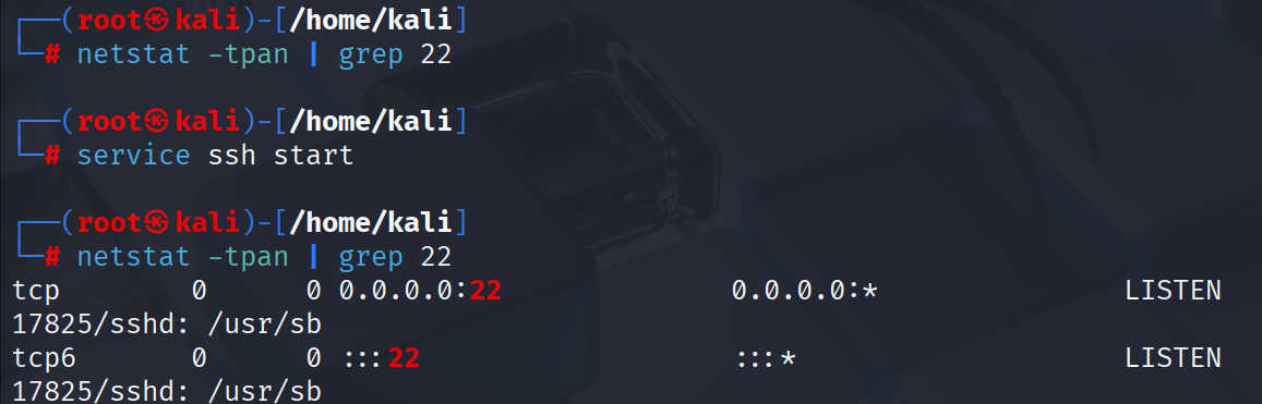 grep 22:过滤出包含"22"的行(通常是SSH服务的默认端口)