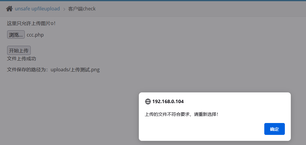 只检测了文件名,没有检测文件类型。仅在前端做了验证,后端没有验证
