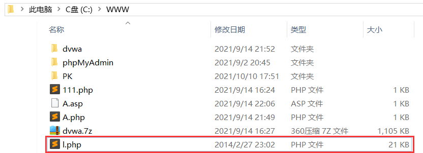 已知WWW目录下存在l.php文件,通过目录遍历漏洞可获取