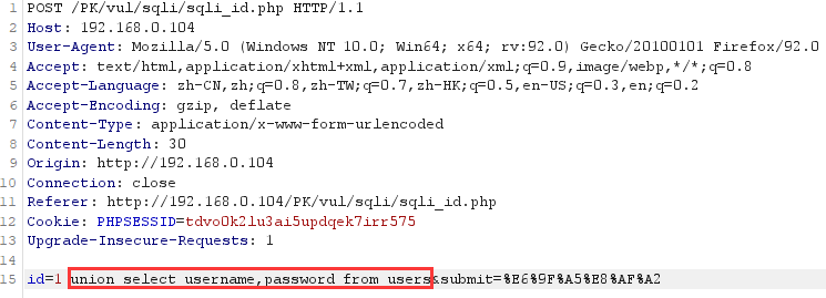 修改数据包中的字段,使用联合查询语句,将users表中username,password字段查询出来
