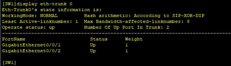 四、验收1.验收聚合链路结果 display Eth-Trunk {number}