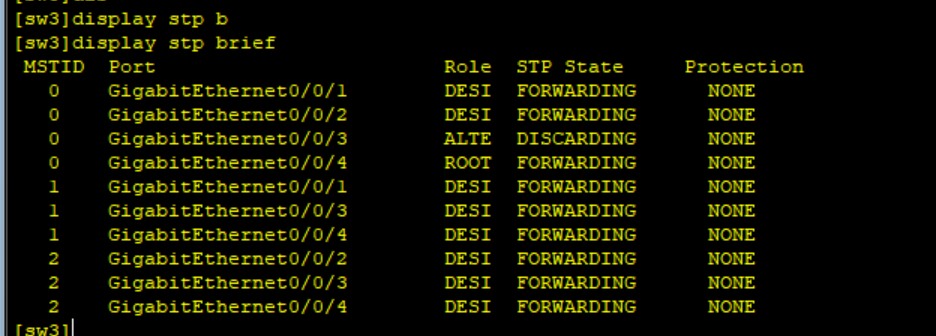 3. vlan2 属于 instance1;vlan3 属于 instance2,SW1是instance1的主根,instance2的备份根,