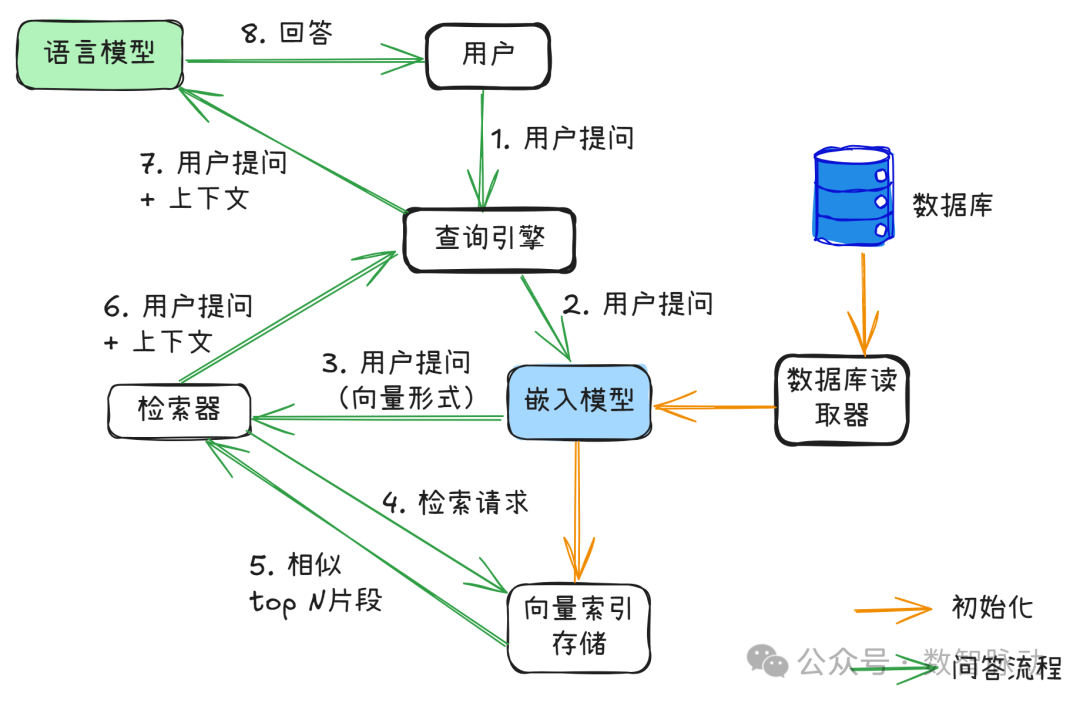 - 检索器根据用户问题(向量形式),从向量索引中找到最相关的 top N 片段。