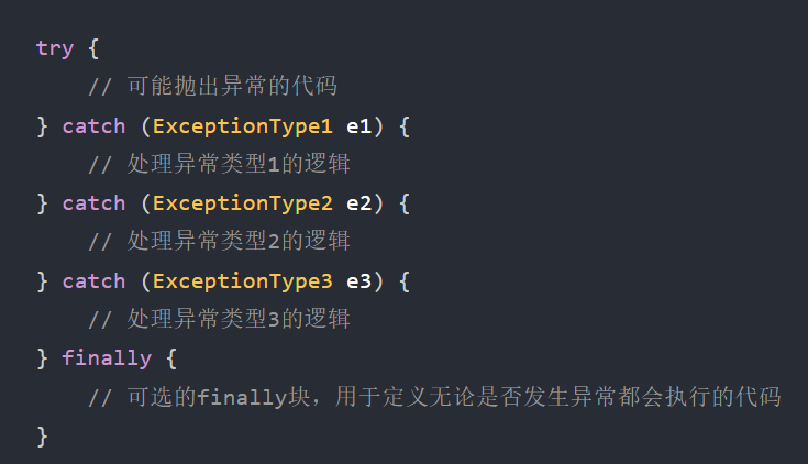 然后try中的代码出现报错将去catch中找到是否有匹配的报错类型