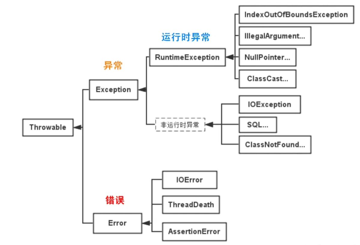 首先Java异常分两个体系,应该是throwable和其子类,其子类有两个重要的类,error错误,exception异常;