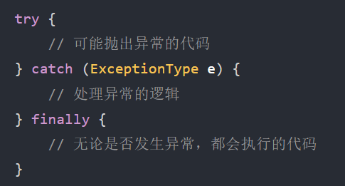 1.可以使用try-catch,可以将try中的代码异常信息提交到catch中进行匹配处理,如果catch所处理的异常类型和try中所发生的异常类型相同即可匹配成功,进行处理