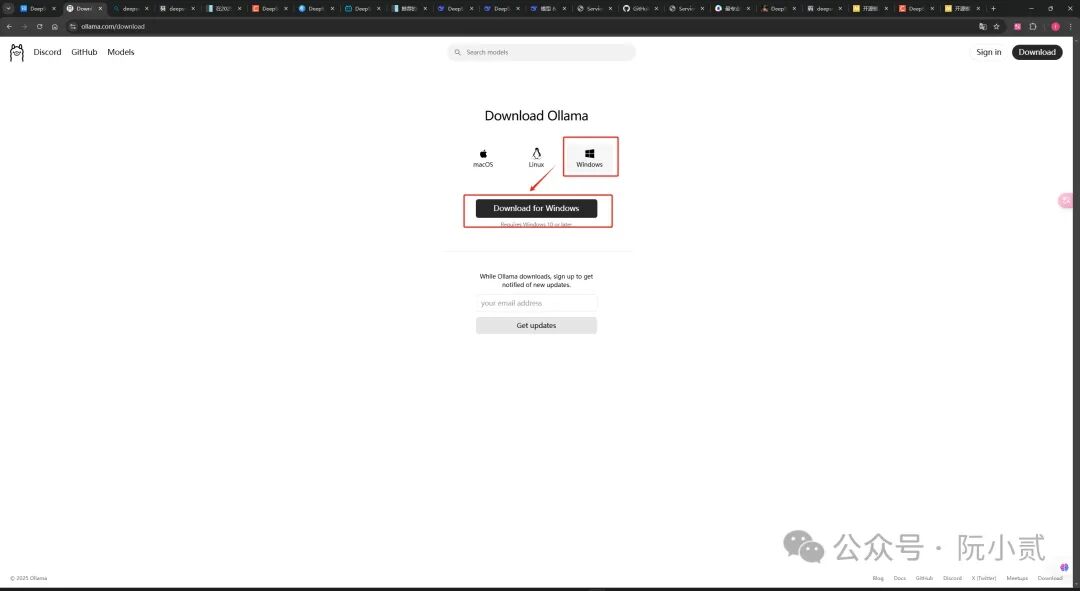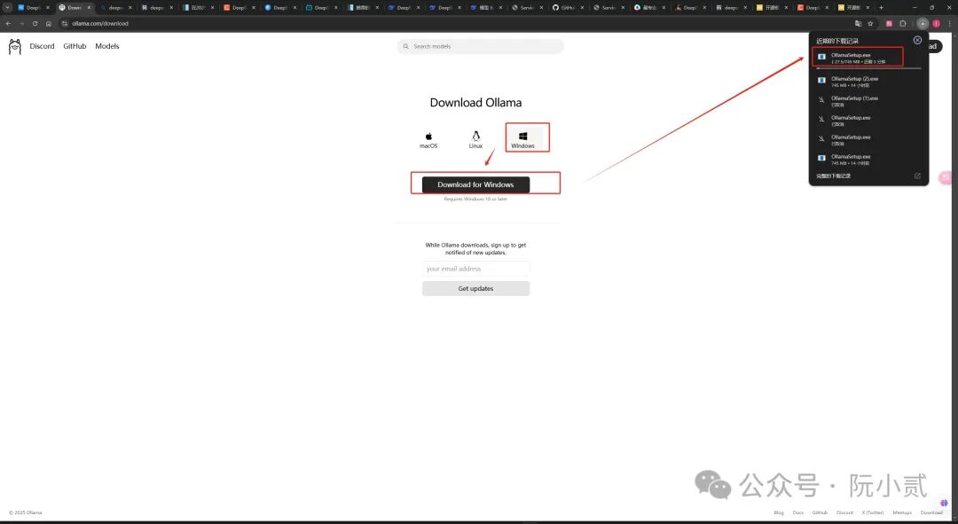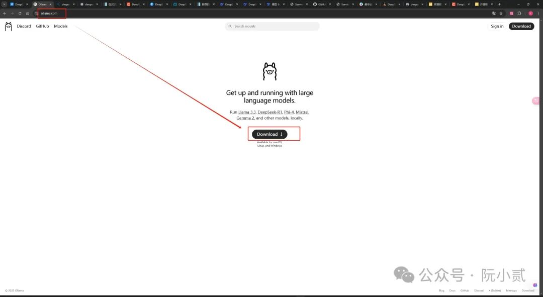 - 访问 Ollama官网(https://ollama.com/),根据操作系统(Windows、macOS 或 Linux)下载安装包。