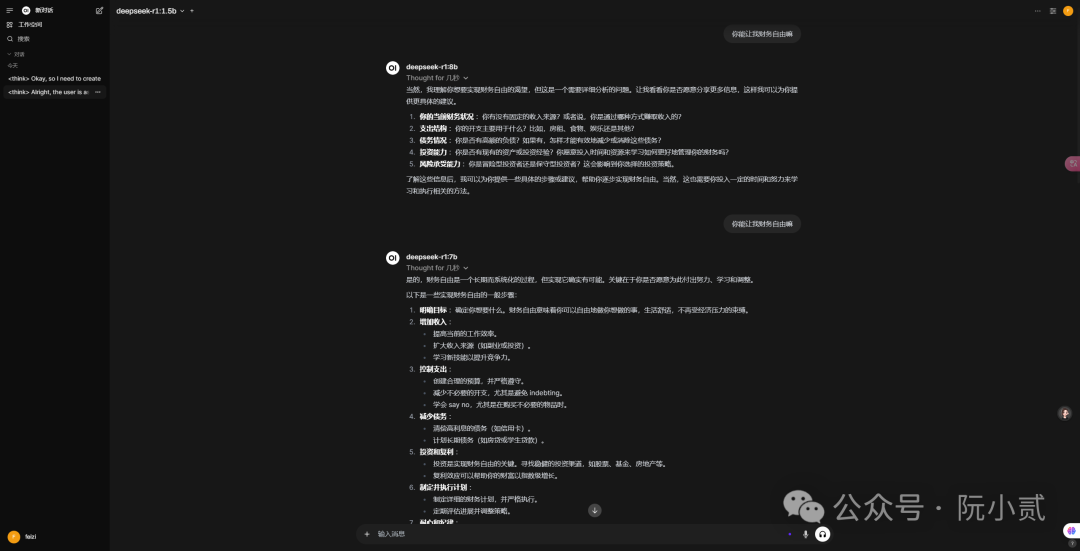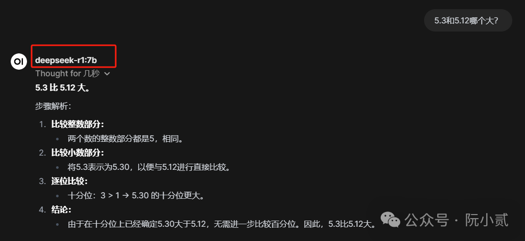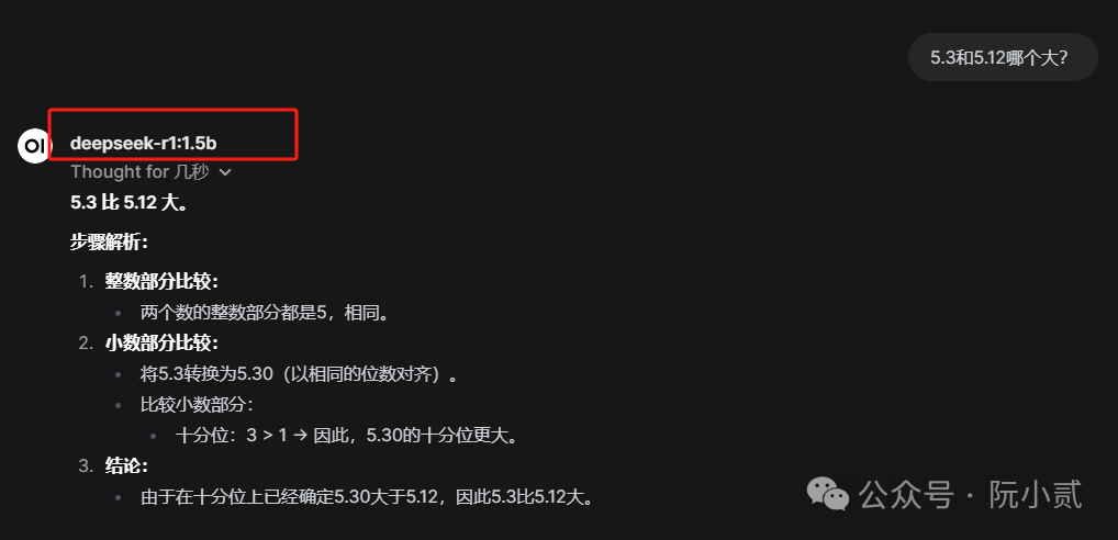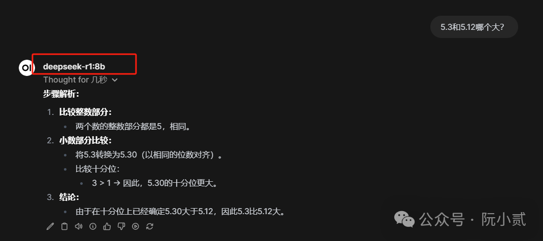 上面我分别使用了五种模型进行测试,只有R1模型确确实实是在推理,而其他两种默认的模型都是普通模型,没有推理能力。