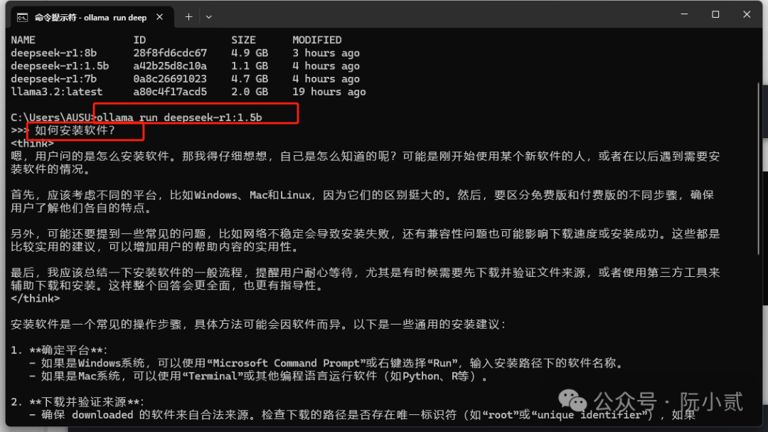 - 启动后,模型会进入交互模式,用户可以直接输入问题并获取回答。