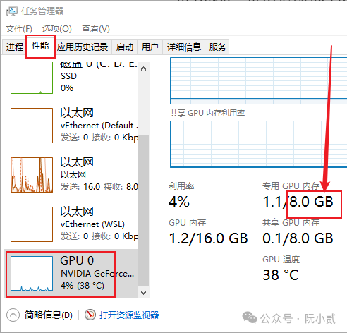 Ctrl + Shift + Esc打开任务管理器->性能->GPU
