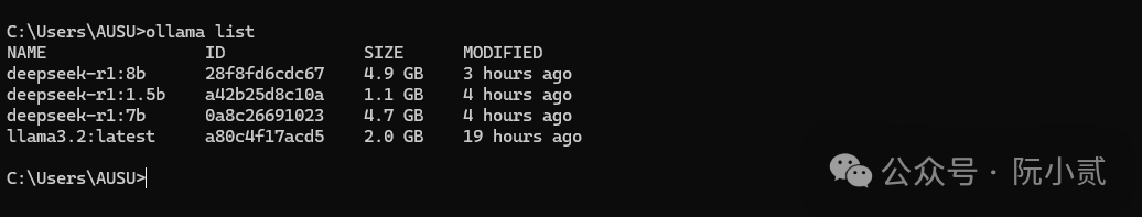 - 该命令会列出本地已下载的模型及其状态。这是我笔记本上的本地模型。