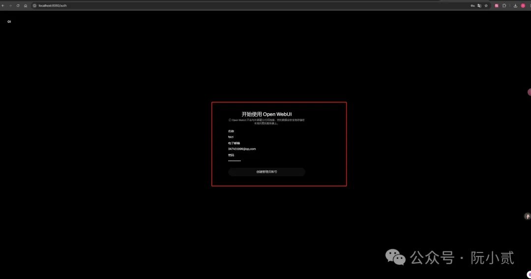 启动后,在浏览器中访问 http://localhost:8080/ 即可进入 Open WebUI 界面。