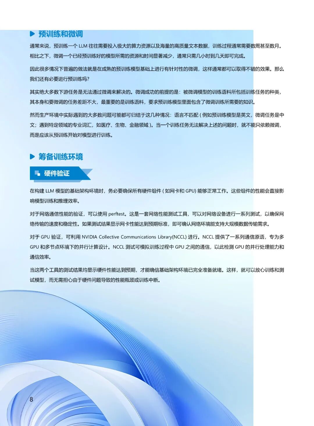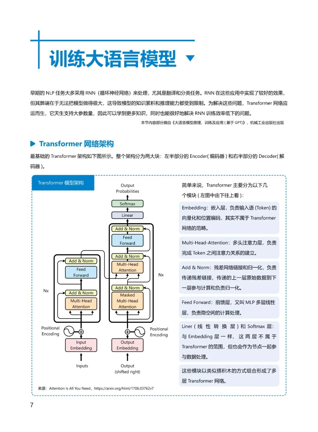 训练大语言模型:Transformer网络架构包含Encoder和Decoder,由Embedding、多头注意力层等模块组成,解决了RNN的局限。训练LLM有预训练和微调两种方式,预训练需大量资源,微调基于预训练模型,二者适用不同任务场景。训练前要验证硬件性能,可选择本地服务器或云环境,如Azure的N系列虚拟机 。