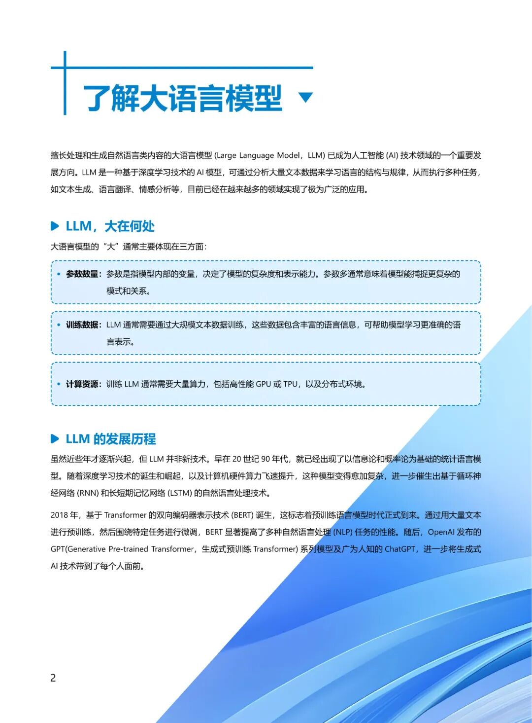 该指南由微软发布,主要介绍大语言模型(LLM)的基础知识、训练方法,以及GPT和Copilot的应用,展示了微软在AI领域的技术成果和应用方案。