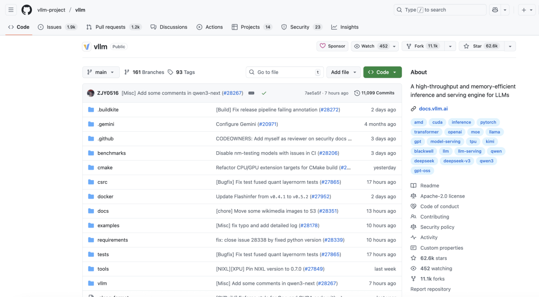 vLLM 是一个开源的大语言模型(LLM)推理与服务引擎,由 加州大学伯克利分校 Sky Computing Lab 发起开发,现已成为社区驱动项目,并被正式纳入 PyTorch 生态系统项目。