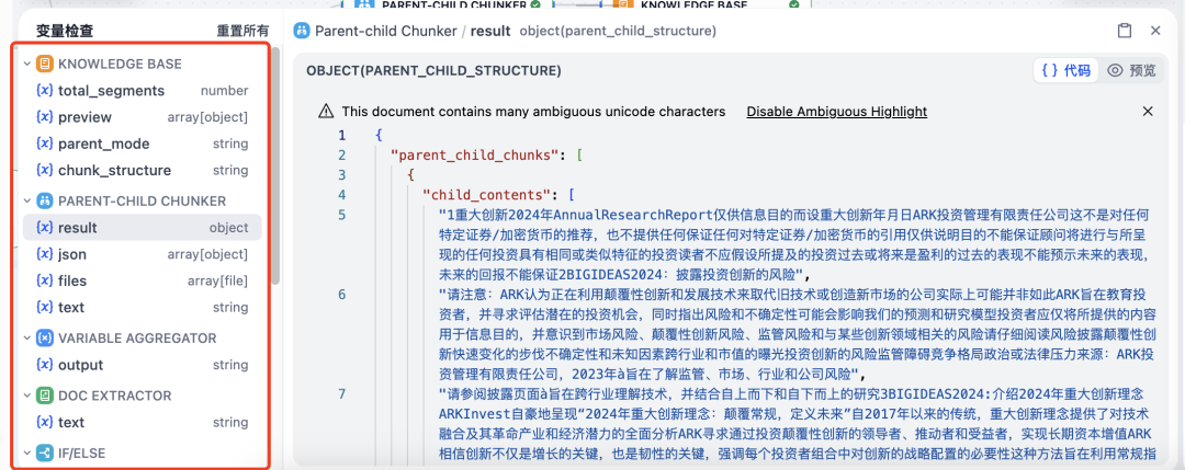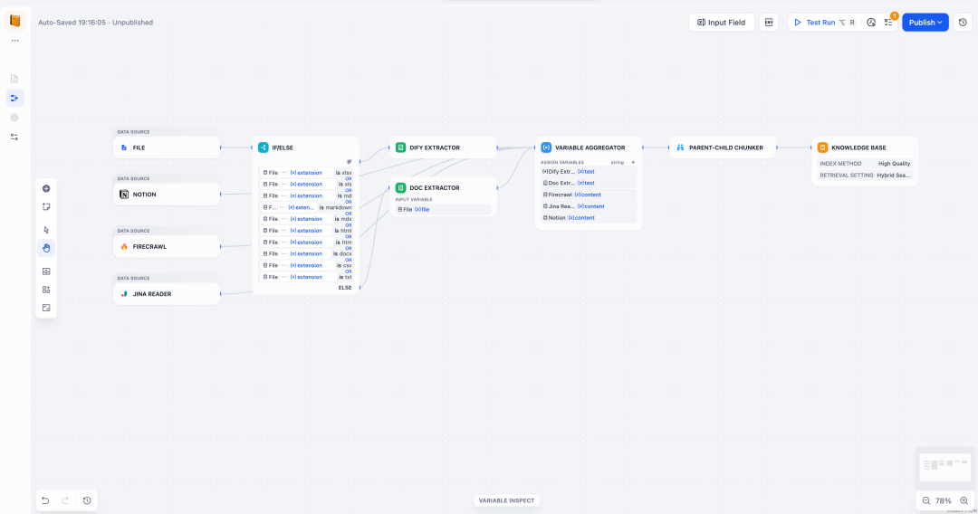 旧版 Dify 数据处理流程如同黑盒,问题难以定位。Knowledge Pipeline 提供了可观测的数据调试过程: