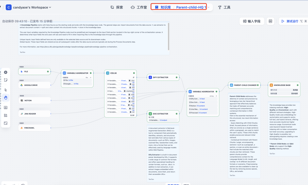测试通过后,点击发布,一个完整的 KnowledgePipeline 就发布完成了。