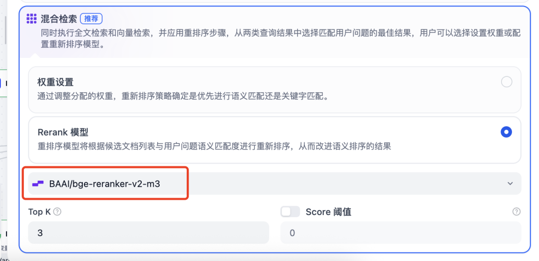 Rerank 模型切换,同样的也是硅基流动的,BAAI/beg-reranker-v2-m3模型。