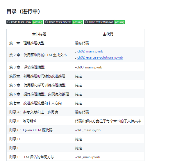 本书介绍的方法将引导您完成开发小型但实用的推理模型的过程,用于教学目的。它借鉴了创建 DeepSeek R1、GPT-5 Thinking 等大规模推理模型的方法。此外,本书还包含用于加载现有预训练模型权重的代码。
