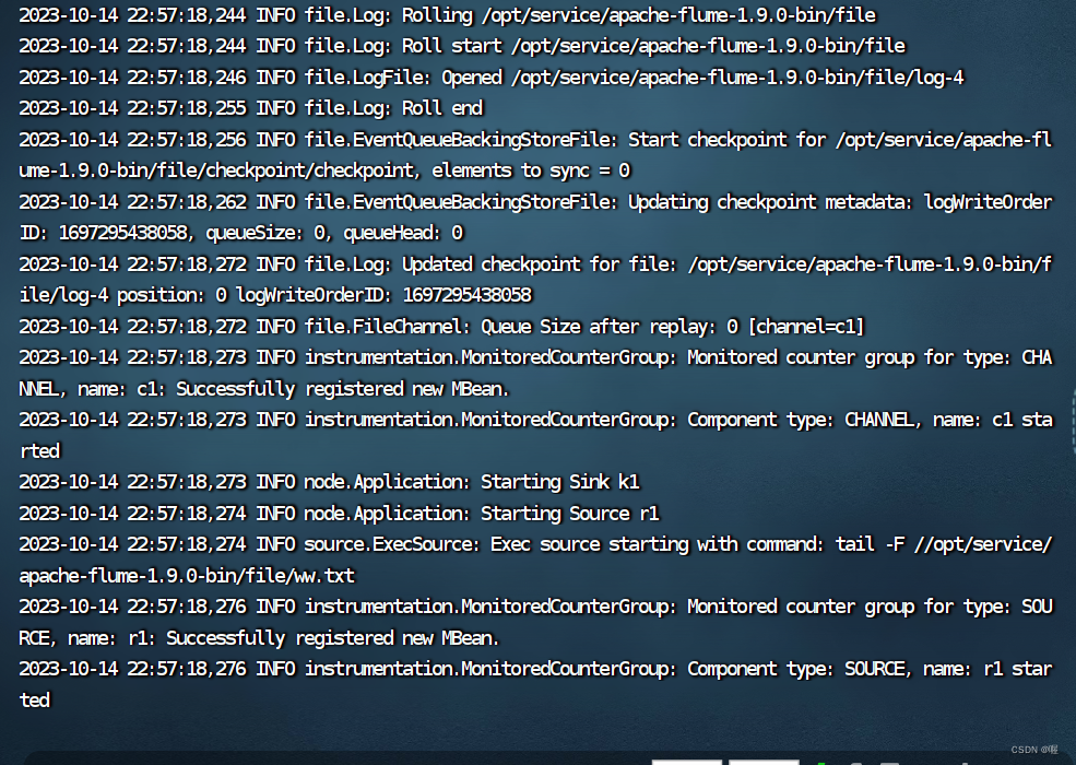 flume-ng agent -n a1 --conf-file exec-spillable-log.conf -Dflume.root.logger=INFO,console