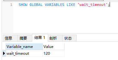 因此,要么就修改MySQL的超时时间为5400s(也就是1h30min),要么就把代码的存活时间设置为90s左右
