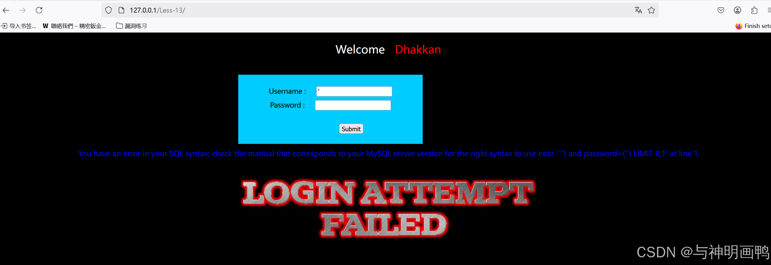 在上下框输入',发现都有报错,可能存在回显点。