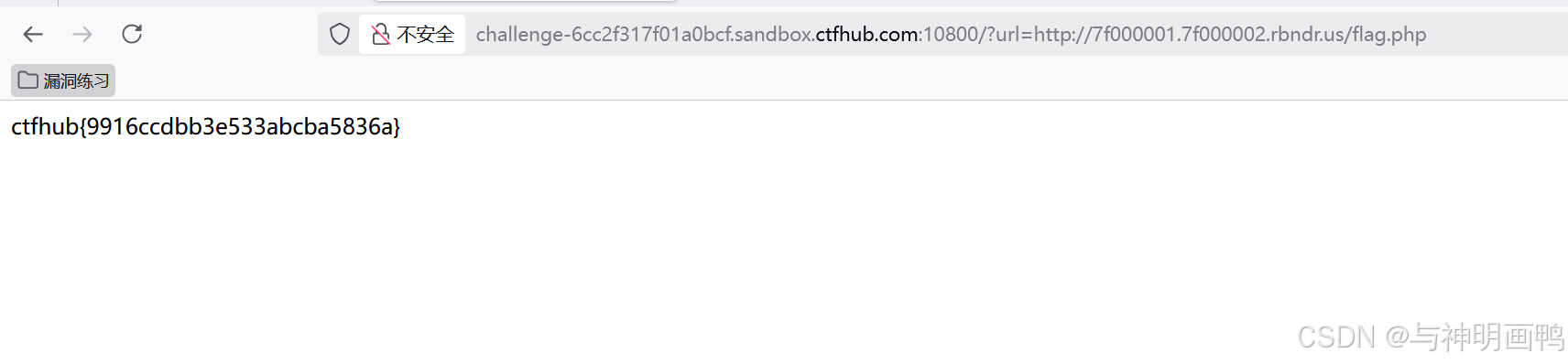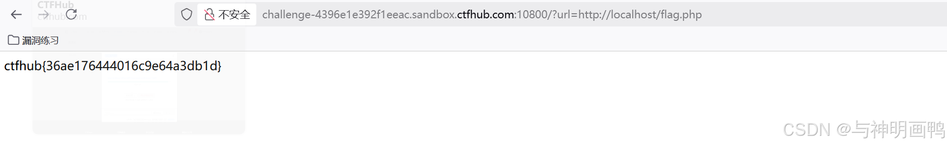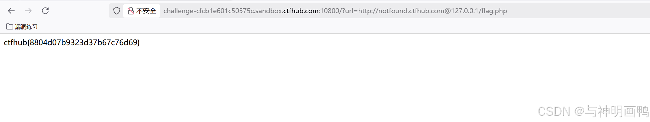 在http://notfound.ctfhub.com后加上@127.0.0.1/flag.php即可