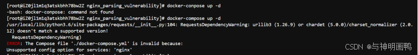 配置中出现上面报错检查docker-compose.yml内容(版本号)