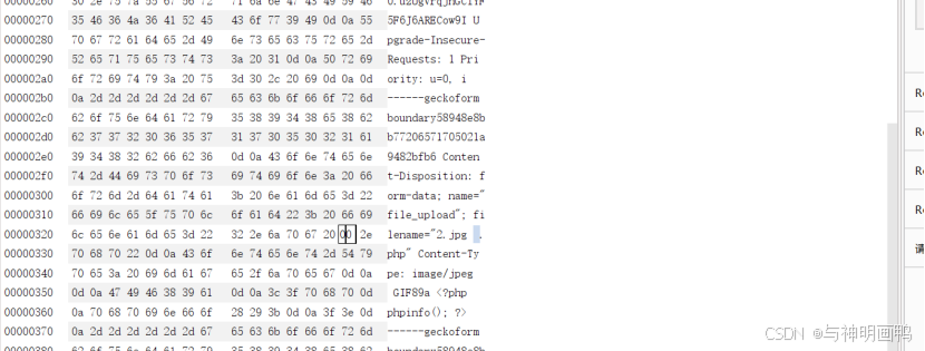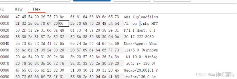 在2.jpg后加两个空格.php,点开hex,找到20,20改为20,00