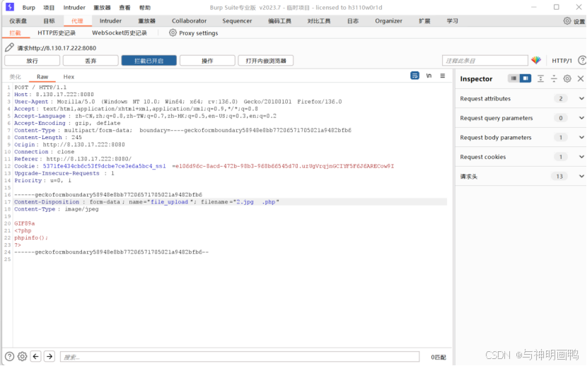 发送后即可 上传成功,然后访问这个文件(2.jp后面抓包补齐)