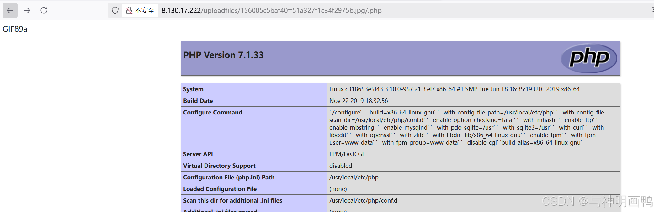 得到文件地址访问,在后面加上.php即可(为方便展示木马换成了phpinfo())