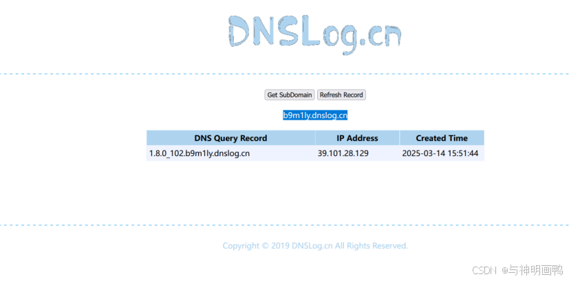 打开靶场,先在⾃⼰搭建的DNSLOG平台上获取⼀个域名来监控我们注⼊的效果.