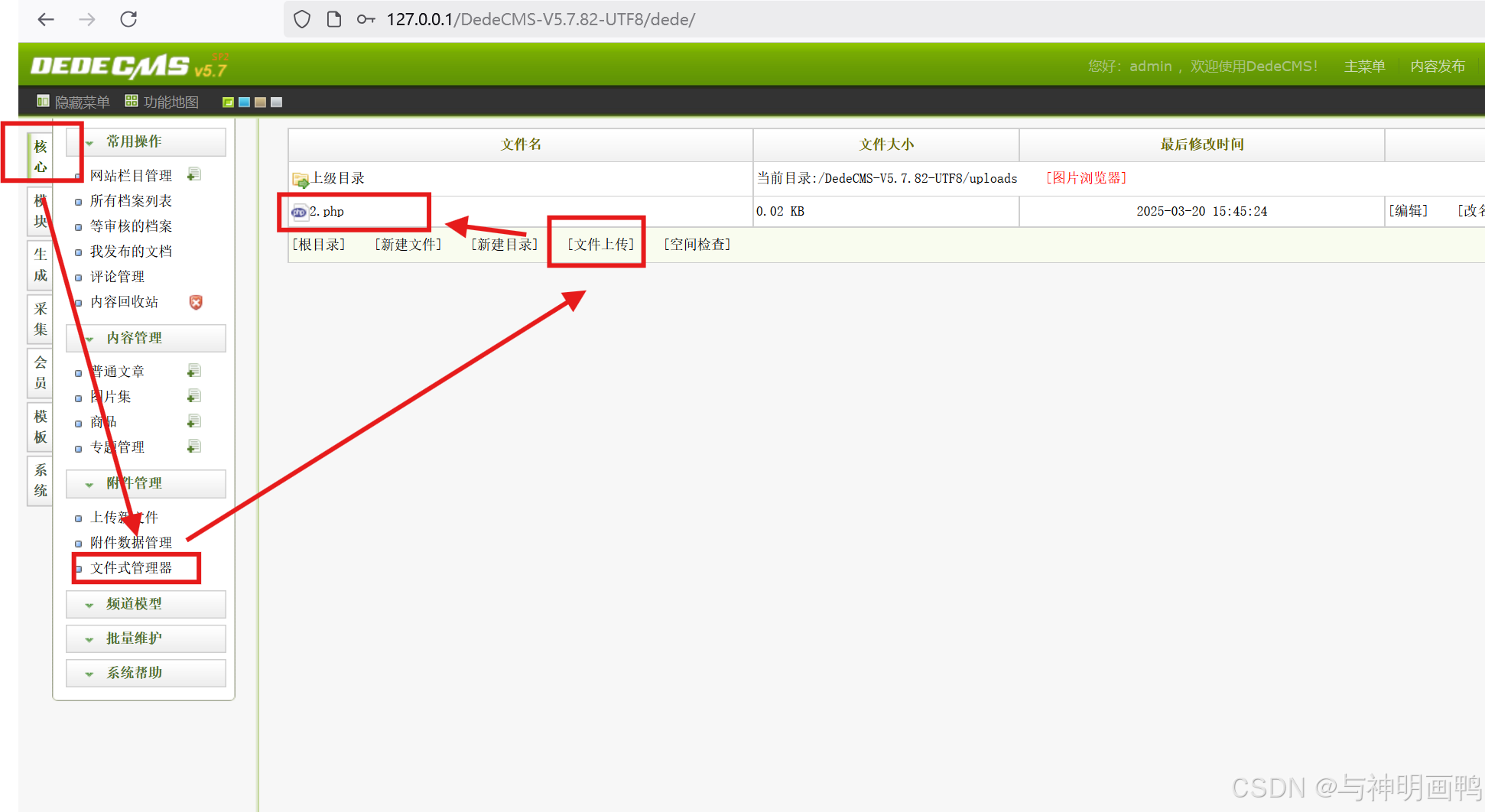打开网站,依次点击核心--文件式管理器--文件上传