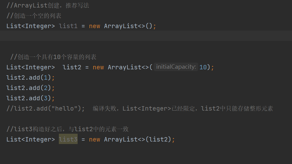 ArrayLsit(int initalCapacity) 指定顺序表初始容量