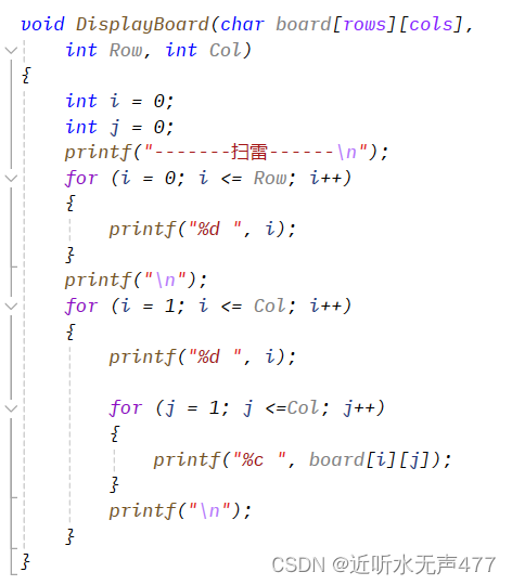 1.row和col就表示行和列为了能使整个程序的关联性更强(即在修改棋盘的参数的时候更加的方便),在表示棋盘的参数时尽量不要直接使用数字,再有前面考虑到的越界问题,棋盘的大小应为理想行列数+2!!(rows cols)