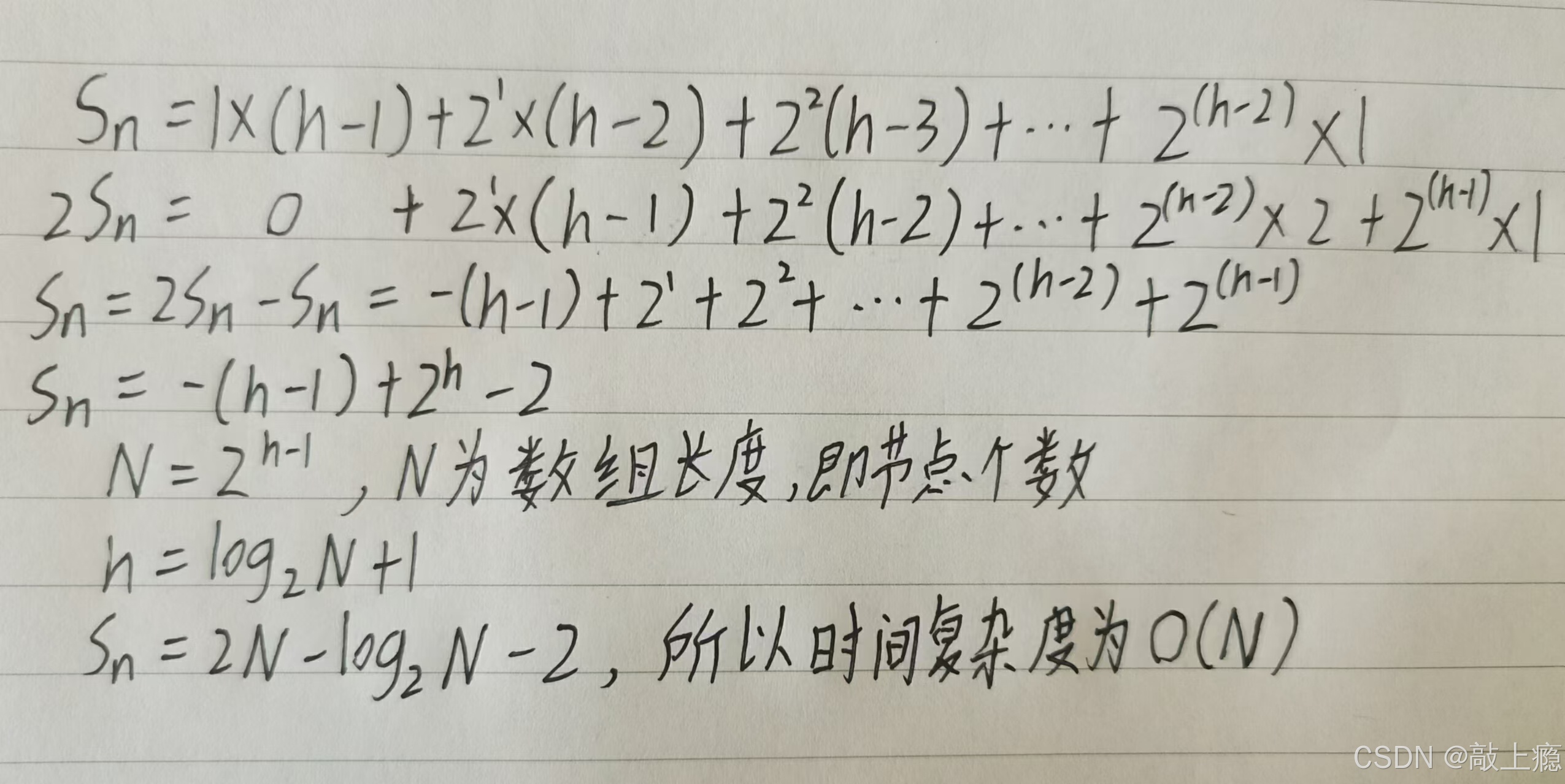 不过该方法相比向下调整建堆效率比较低,我们来看向下调整建堆法。