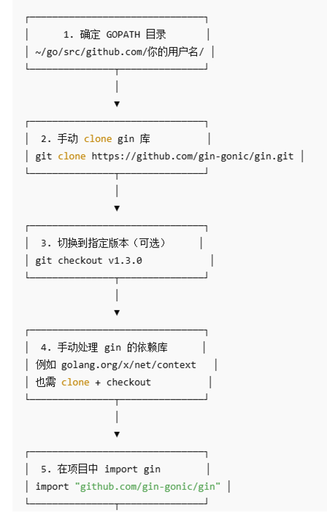 2. 用 “版本化依赖” 替代 “代码副本” 通过go.mod中声明依赖的版本号(如require github.com/gin-gonic/gin v1.9.1),依赖会被下载到本地缓存($GOPATH/pkg/mod),项目中仅记录版本引用而非源码副本。