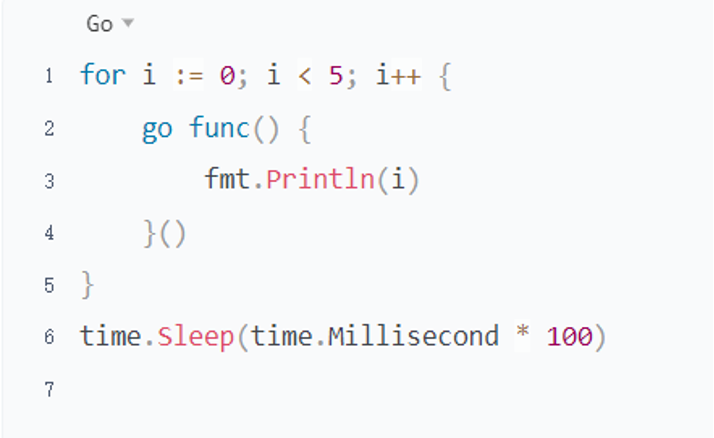 在 Go 1.21 及之前的版本中(比如 Go 1.20、1.19),闭包会捕获变量 `i` 的**引用**,而不是每轮循环的拷贝。所以所有 goroutine 可能都会打印**最后一次循环后 i 的值(即 5)**,