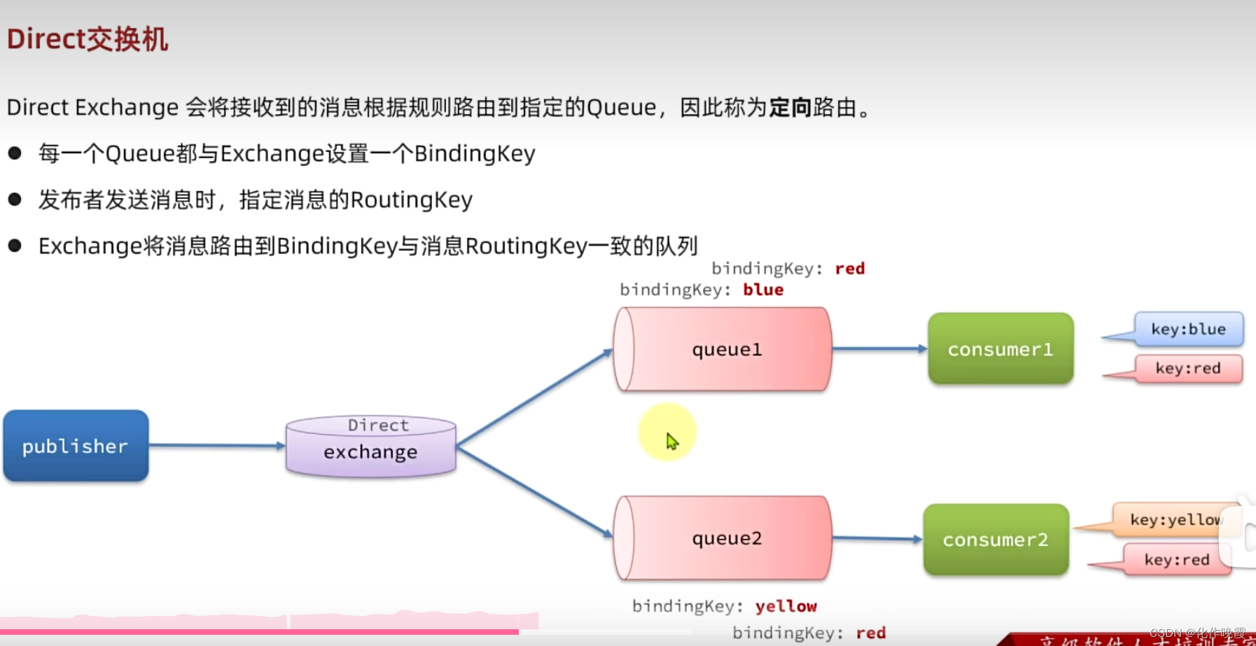 就是假如我们声明的是一个direct交换机,但是我们需要绑定key的时候,是在binding.().to().with(key),但是我们每次只能绑定一个key,所以非常繁琐。